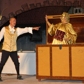 Der Abend ist hereingebrochen und Jedermann gibt seiner Buhlschaft und seinen Freunden ein großes Fest. Es geht hoch her, aber Jedermann ist seltsam abwesend. Er hört Glocken läuten und seinen Namen rufen. Dem Zureden der Tischgesellschaft und der Fürsorge seiner Buhlschaft gelingt es endlich, ihm die schlechte Laune zu vertreiben und die Fröhlichkeit kehrt zurück – da erscheint der Tod. In wilder Flucht rennt alles auseinander. Jedermann bittet den Tod um einen kurzen Aufschub, damit er sich in seiner Verzweiflung Weggenossen suchen kann, aber weder seine Vettern noch sein guter Gesell sind bereit, ihm auf diesem Weg zu folgen. Nun will Jedermann wenigstens sein Geld mitnehmen, aber als er den Truhendeckel aufreißt, erscheint der Mammon und verhöhnt ihn.